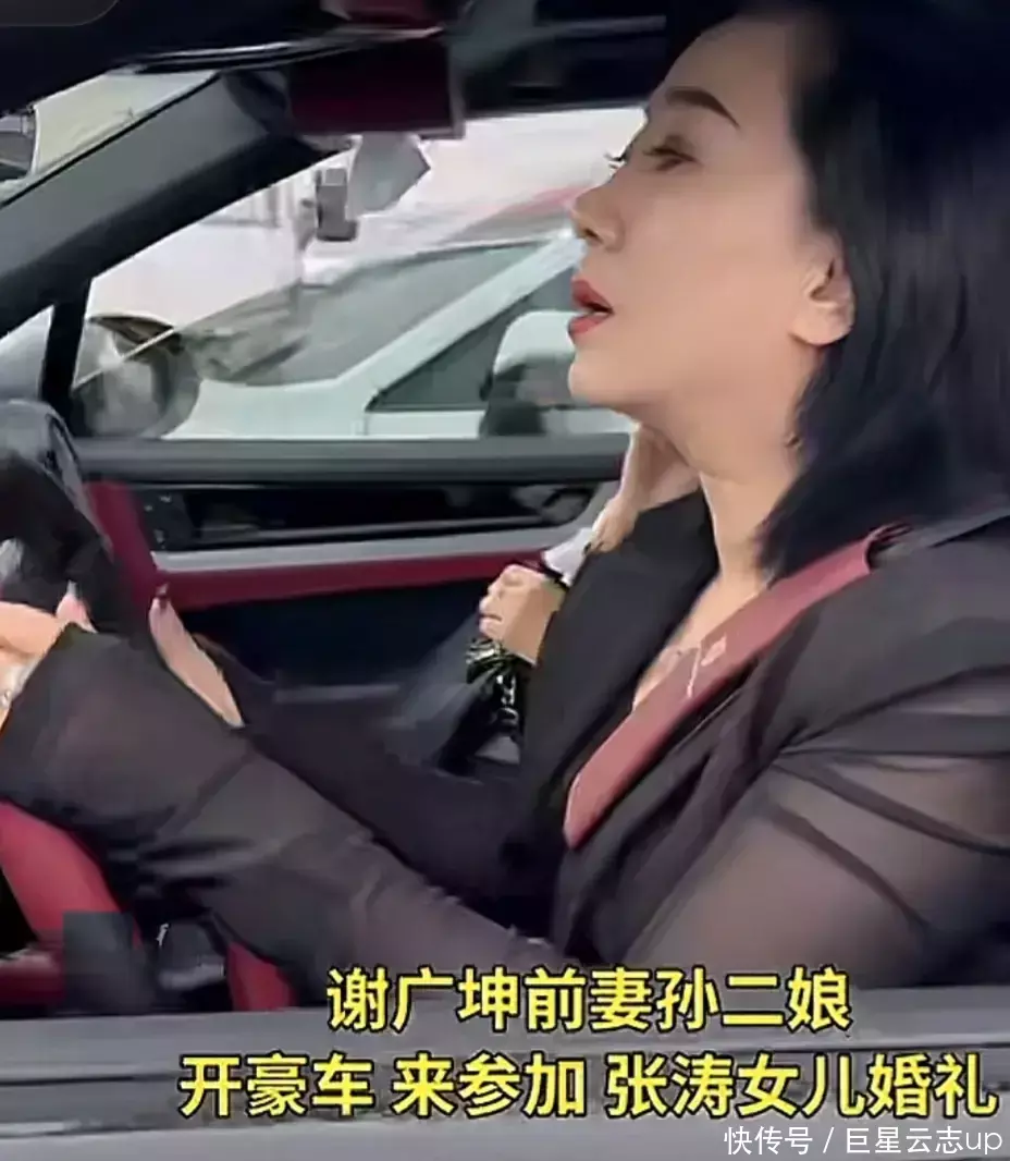 谢广坤的前妻孙二娘疏远现身, 她开着豪车前来参预婚典。